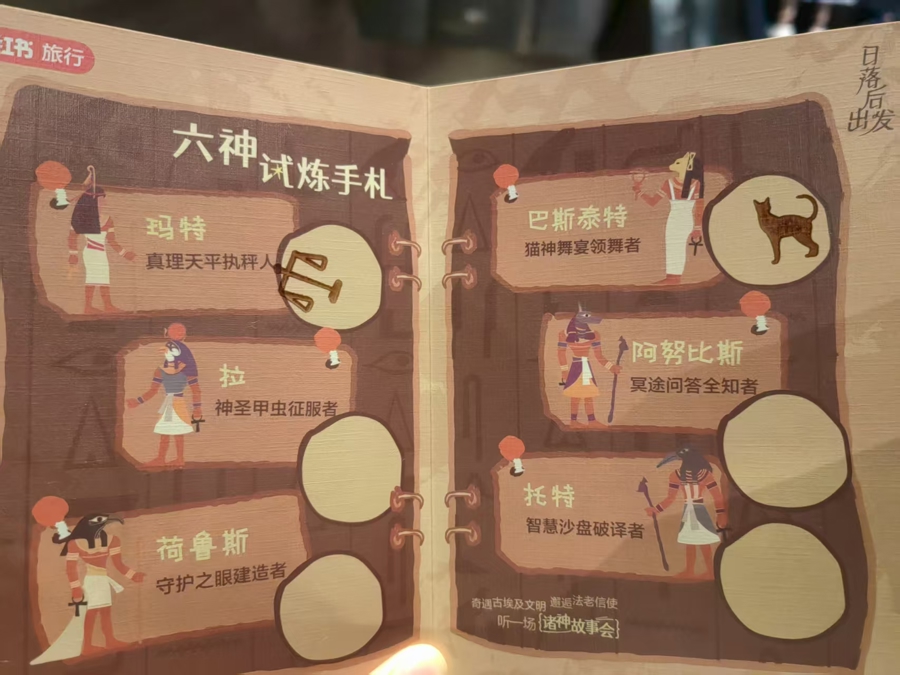 据现场工作人员介绍,活动展板及内容设计等取自埃及展文物元素,六神的谜题根据他们各自的特点来设计,如果参观过埃及展,相信可以轻松作答,还未来得及观展的观众也可以尝试挑战。
