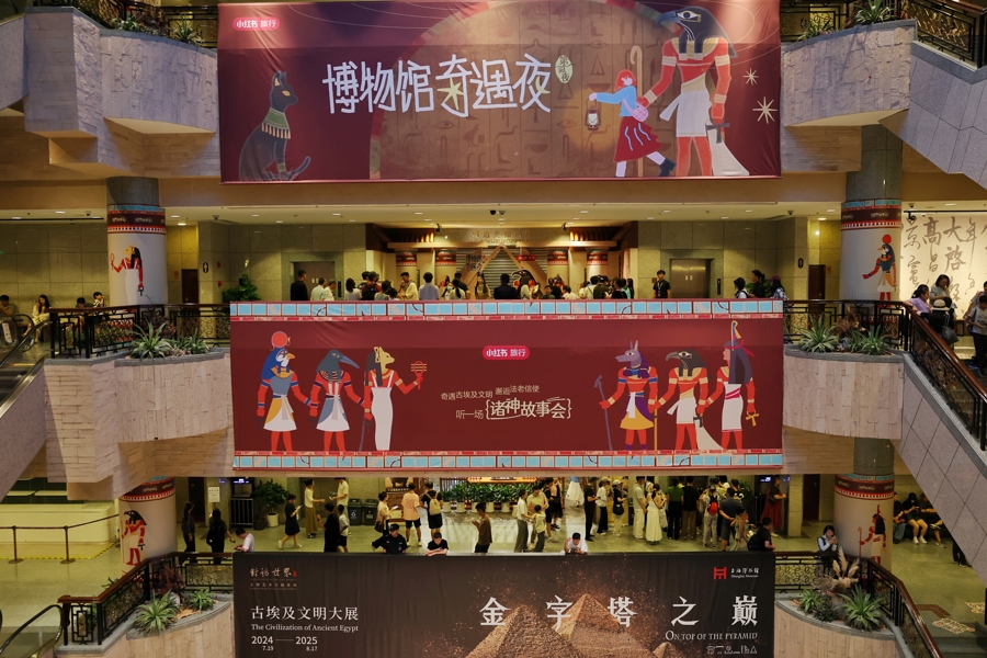 夜幕降临,上海博物馆内依旧人流如织。作为“古埃及文明大展168小时嘉年华系列活动”中的一环,8月9日晚,上海博物馆联合小红书举办“小红书‘日落后出发·博物馆奇遇夜’”。一场跨越尼罗河与黄浦江的“诸神故事会”邀请参观者沉浸式打卡,为博物馆夜场活动拓宽新玩法。